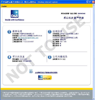 | 3.鄧白式企業認證標章:鄧白氏為企業進行身份認證,核實後賦予企業一個印有“鄧白氏註冊™”的特殊電子標章。該電子標章可以安放在企業的網站上,特性如下:1.專利技術確保標籤及檔案僅可顯示在已授權的網站上,防止盜用。2.點擊該標章時,會通過網路連接到企業在鄧白氏全球數據庫中的最新註冊檔案,包含經鄧白氏權威核實的企業資訊,及該企業的鄧白氏環球編碼。 |