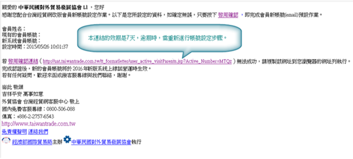 ❷ 如確認無誤,請點選啟用確認連結,即完成啟用確認;