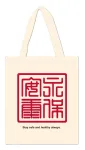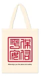 帆布托特包,正面印有篆刻字體印章設計圖案,祝福語:永保安康