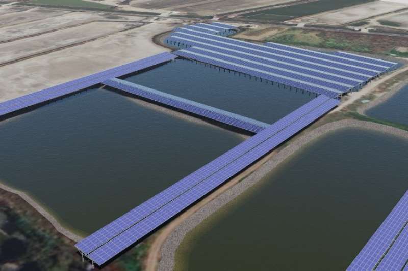 此案計畫在台南市沿海地區170公頃漁塭,利用架高周圍土地,建造123MW 漁電共生案場,預計今年第三季動工,2022年底正式發電,屆時平均年發電量將達 1.8 億度,可供應超過 5 萬戶家庭 1 年所需用電,預估每年減少碳排放量達 9.5 萬公目標。