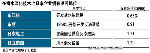 日本有不少企業在這個領域擁有全球領先的技術實力。比如:淡化海水使用的「逆滲透膜」5成由日本製造。