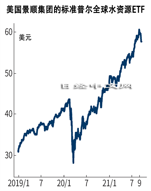 投資者之間對水行業的關注度也不斷提高。以全球水務相關企業為投資對象的「水上市投資信託(ETF)」的價格今年也出現暴漲,自上市以來一直在高位運行。