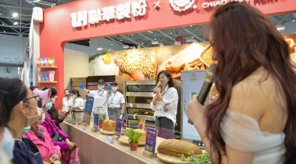 後疫情時代,如何吃的更健康是全民所關注的,搭著健康趨勢的順風車,今年展演活動特別邀請有共同理念的夥伴們,包含客戶「哈肯鋪」、世界麵包冠軍陳永信師傅、世界金廚冠軍許燕斌師傅以及景文科大餐飲系師生團隊聯手聯華製粉新品開發處唐瑋駿及鍾瀚億兩位技師輪番上陣大秀絕活,現場以即將上市的「水手無添加高筋麵粉」及「米雞蛋糕粉」等兩支新品為消費者示範如何吃最健康。