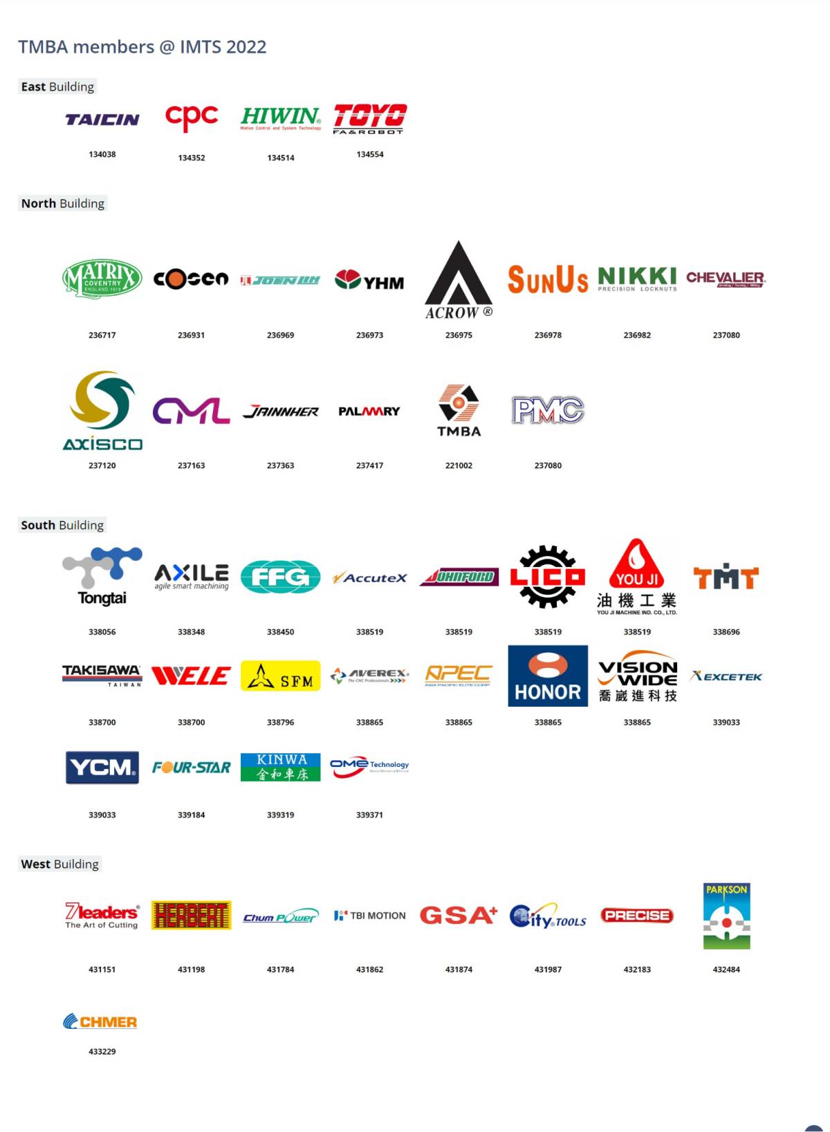 為拓銷台灣工具機產品,台灣工具機暨零組件工業同業公會在IMTS北館會場設置服務攤位,回答現場參觀者問題。公會攤位也提供QR Code協助買主更快速找到此次台灣參展業者之攤位。