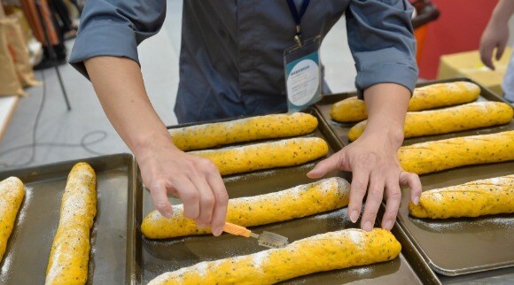 在這次烘焙展上,聯華製粉邀請哈肯鋪、奇美食品、福利麵包、樂田麵包等知名客戶共同站台,以【健康、高齡】為展演主軸,不僅世界麵包冠軍陳永信師傅和世界金廚冠軍許燕斌師傅聯袂選用目前正處於新品試用募集階段的「水手牌_無添加高筋粉」展演多款烘焙品,聯華製粉新品開發師傅鍾瀚億也運用無添加麵粉能提高吸水率之特性,展出三款質地綿密、適合牙口不佳長輩食用的烘焙新品,聯華製粉甜點師傅唐瑋駿則特別選用以台灣蓬萊米穀粉為原料、完全不添加麵粉的「米雞蛋糕粉」新品,於現場示範小蛋糕及司康,而低麩質與易消化之特性亦能滿足長者及消費者的健康需求。而僑泰興則是邀請到中式麵點界國寶級大師周清源老師使用「嘉禾牌劍蘭麵粉」示範中式麵點,向來致力推廣健康無添加創意中式點心的立體造型饅頭女王-王美姬老師,也選用「嘉禾牌中筋麵粉」親自展演顛覆傳統的Q萌立體饅頭,還有僑泰興烘焙主廚張祥斌師傅透過完全無添加且適合家庭烘焙的「嘉禾牌DIY高筋麵粉」於現場傳授民眾在家DIY麵包、吐司的小撇步。