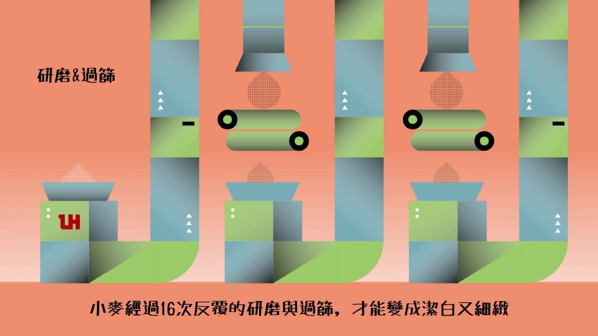 十六道的研磨與精篩 研磨出純白潔淨麥香