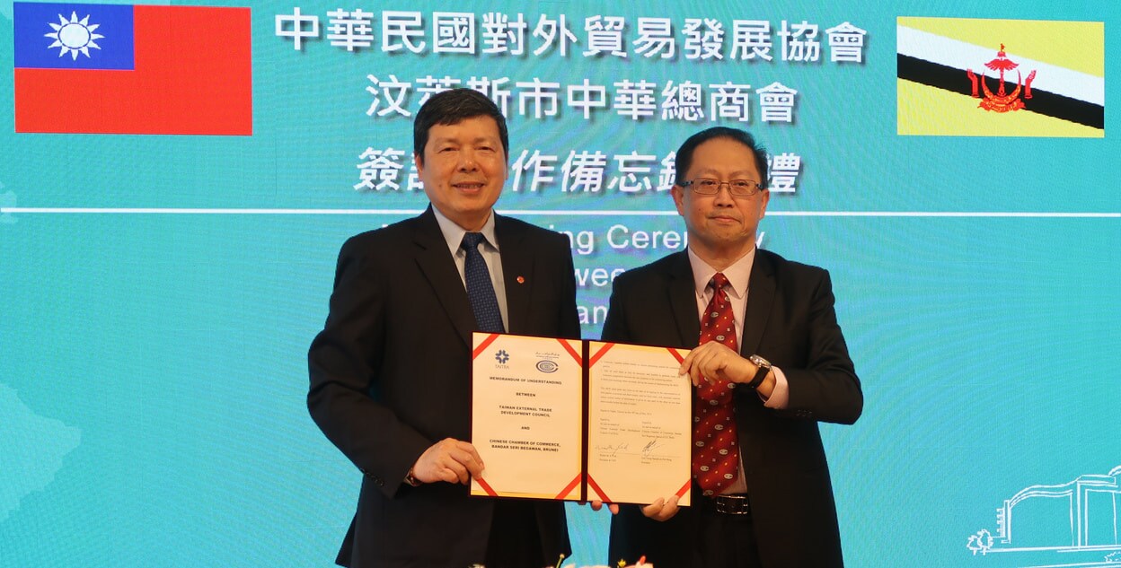 外貿協會與汶萊斯市中華總商會(後稱汶京中華總商會)於本(2019)年5月30日由貿協葉明水秘書長及汶京中華總商會林柏明會長代表簽署合作備忘錄。兩會建立正式關係後,可望為我國與汶萊貿易合作增加助力。