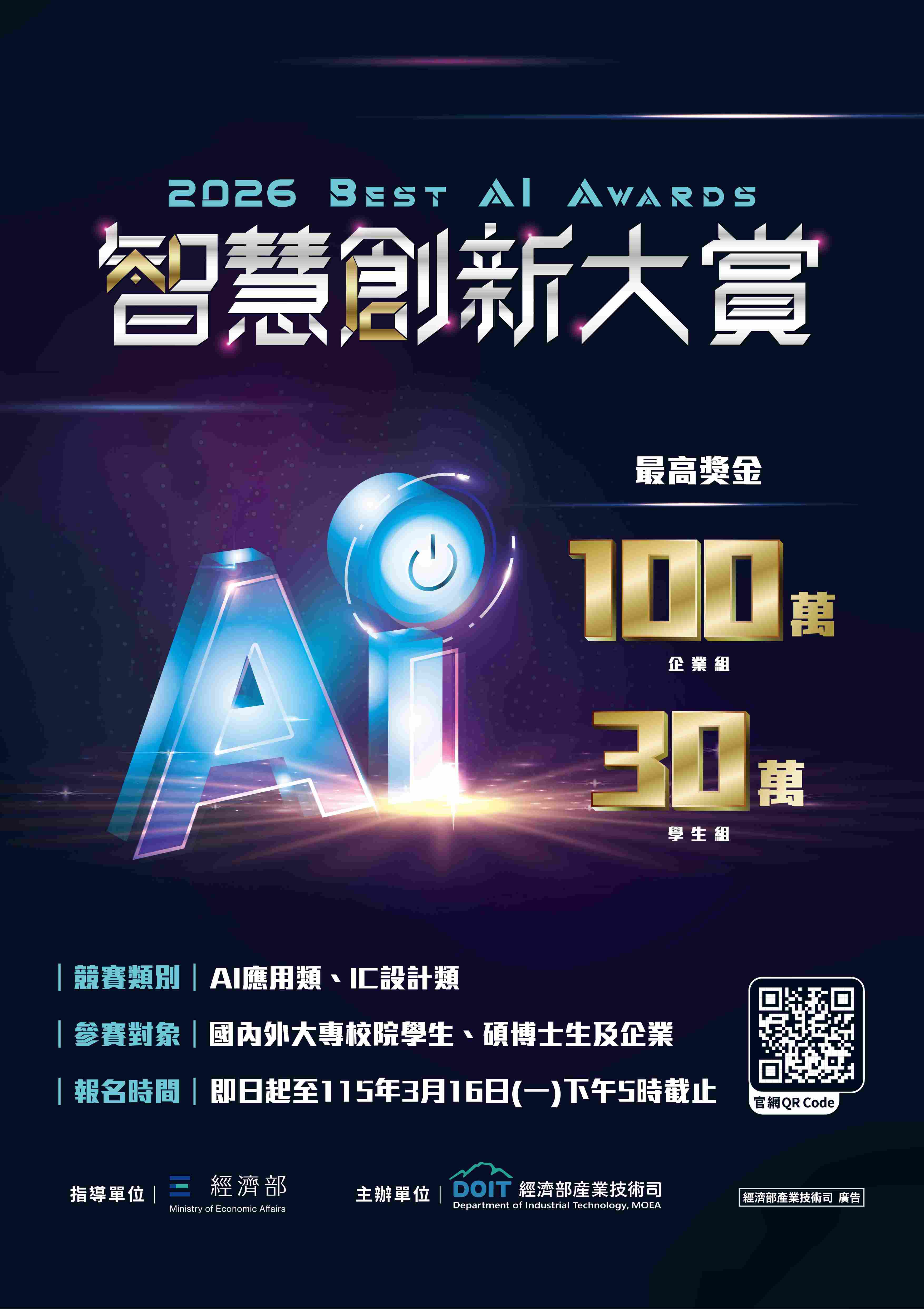 一、本部為促進AI產業化、產業AI化,並推動「2+4人才培育方案」,今(115)年持續辦理「智慧創新大賞」(以下簡稱本競賽)。