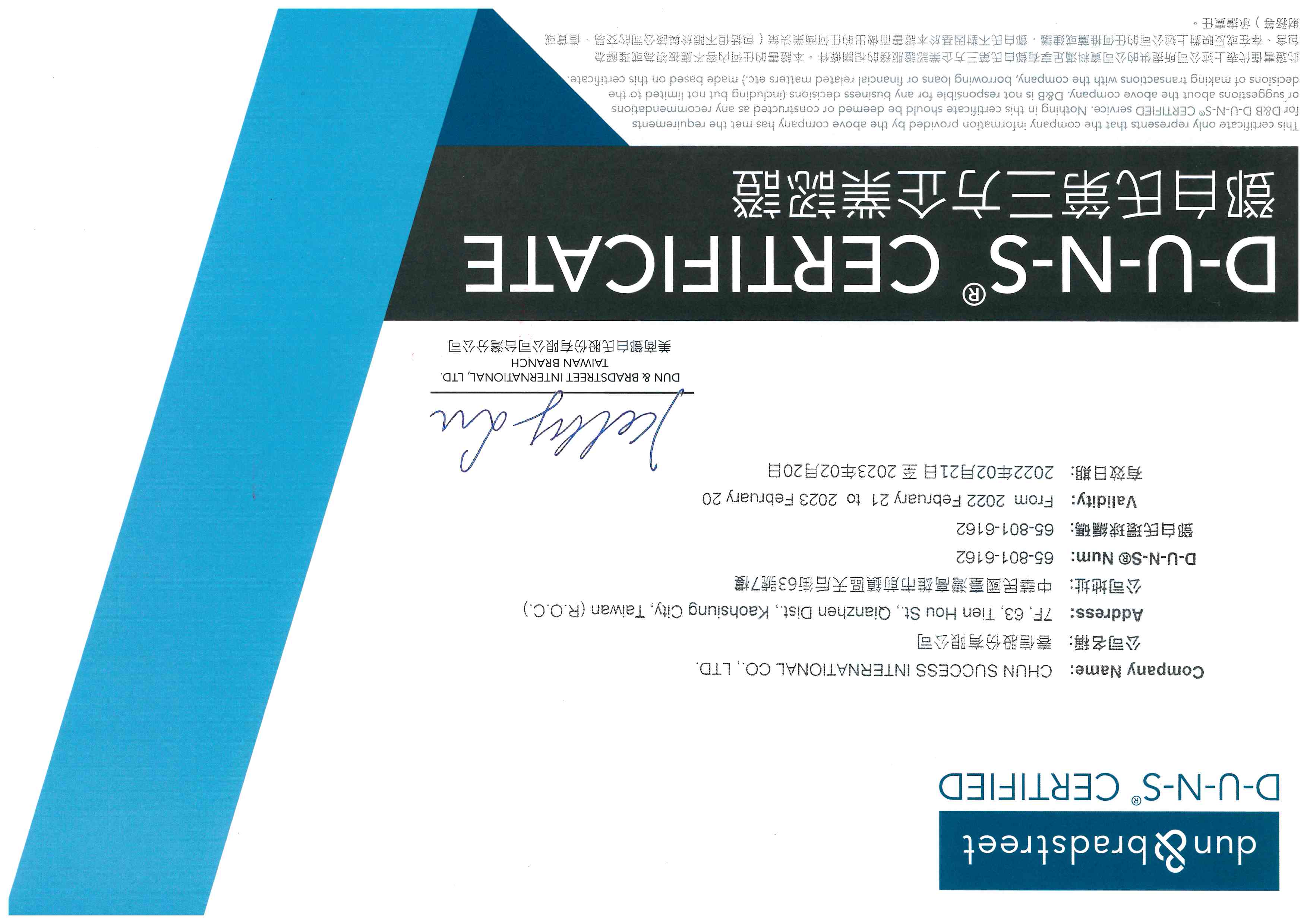 通過鄧白氏第三方企業認證(D&B D-U-N-S Certified)-公司營運能力認證