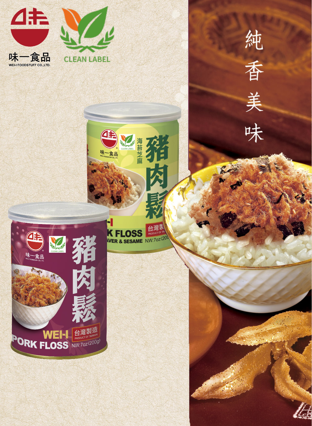 味一產品線中首推的就是招牌「金槍魚鬆」及「海苔芝麻金槍魚鬆」,原料均採買自有海豚保護聲明漁船捕撈的鮪魚,為維護海洋生態盡一份心力;另外也不能錯過採用台灣豬肉的「豬肉鬆」與「海苔芝麻豬肉鬆」,豐厚淳美一口難忘。這四樣產品都無其他添加成份,並通過雙潔淨標章驗證及FSSC 22000認證,健康美味有保障。