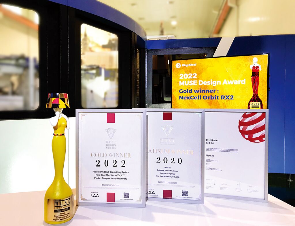 由國內製鞋機械龍頭大廠-鉅鋼機械在2019年就開始研發的量產型物理發泡射出成型系統,繼拿下德國IF設計獎、紅點設計概念獎、美國MUSE鉑金獎等三項國際設計大獎後,今年再以「NexCell Orbit圓盤式量產型物理發泡射出成型系統」(PIS)四度掄元、勇奪美國MUSE設計金獎,締造出空前輝煌的記錄,震撼業界。