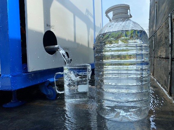 因缺水問題而研發出的產品地表水淨水系統(急難救助飲水系統),天災或後天因素所引起的用水不足都不再是問題,只要將設備放置在水源處,抽出的地表水如溪水、排水溝、地下水等,透過系統處理後能使水質達到SGS飲用水檢驗標準,此系統能解決企業遇到限水所造成的供水不足問題,也能協助提供偏遠地區用水不足的情況,使用範圍非常廣泛。