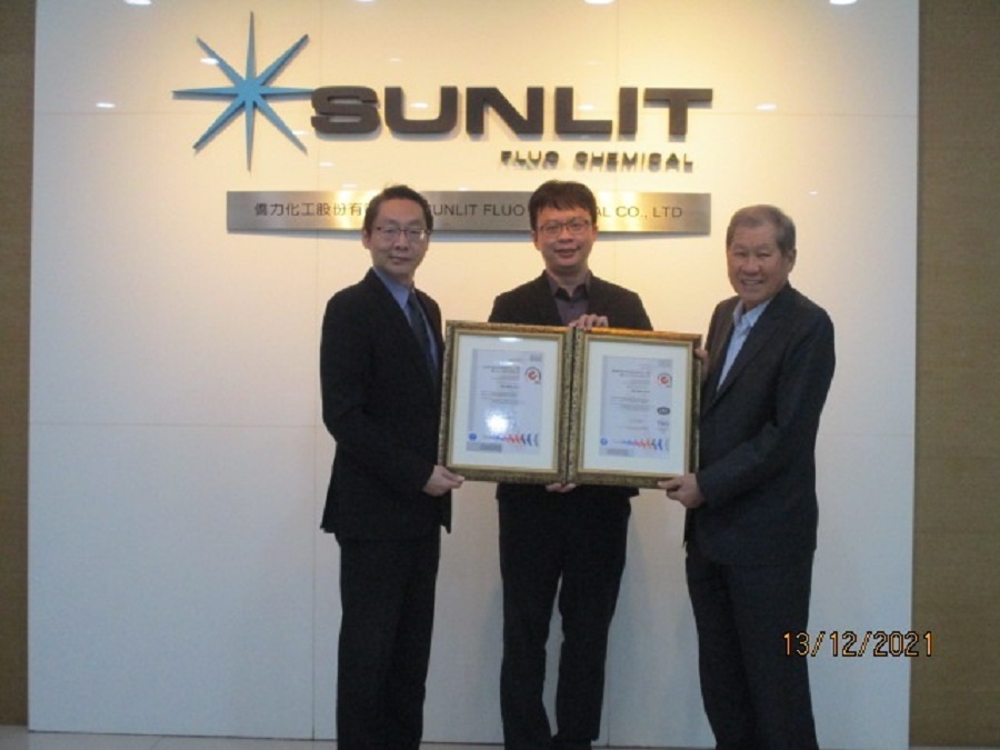 SGS台灣檢驗科技公司於日前(12月13日)頒發台灣化工業/電子化學材料第一張ISO 46001水資源效率管理系統證書及ISO 50001能源管理系統證書等雙證書予僑力化工股份有限公司(SUNLIT FLUO & CHEMICAL CO., LTD),這兩張證書彰顯出僑力化工公司對企業永續的承諾與決心,也是面對氣候變遷下保護地球環境行動的起始。