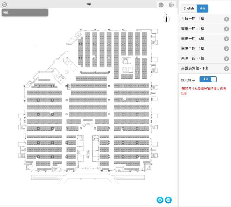 - 右側的頁籤可切換展覽館別 (預設為世貿一館1樓)。