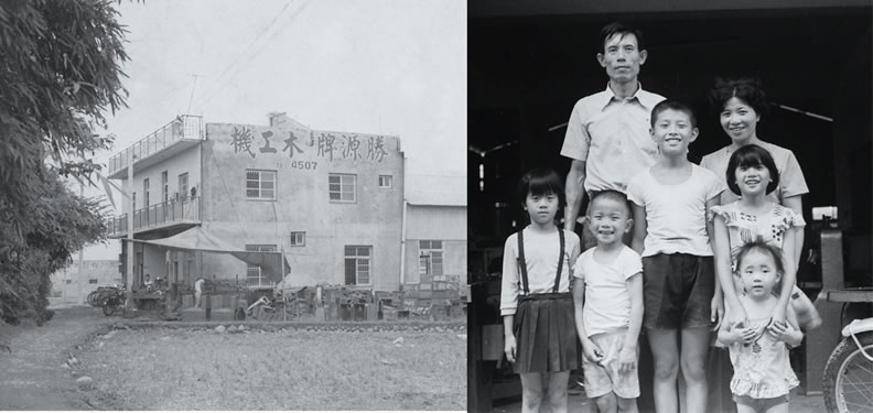 勝源機械是國內最長青的工具機品牌之一,創辦人張必愉(中後)從豐原發跡,當時張聰捷(左二)只有4歲,歷經擴廠,現在的面積已是神岡舊址的4倍大。(照片來源:勝源機械)