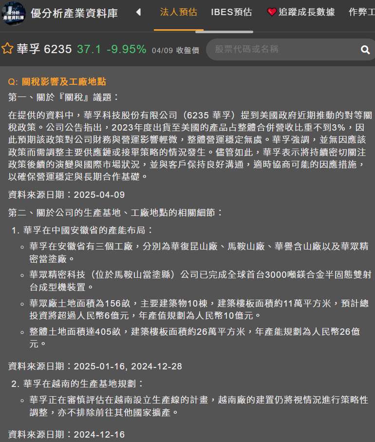 這顯示在國際政治經濟局勢不確定性增加的背景下,車廠客戶對於供應鏈風險分散的要求日益提高,促使華孚(6235-TW)積極尋找其他的生產據點,不僅僅是越南,也在評估其他國家的可能性。