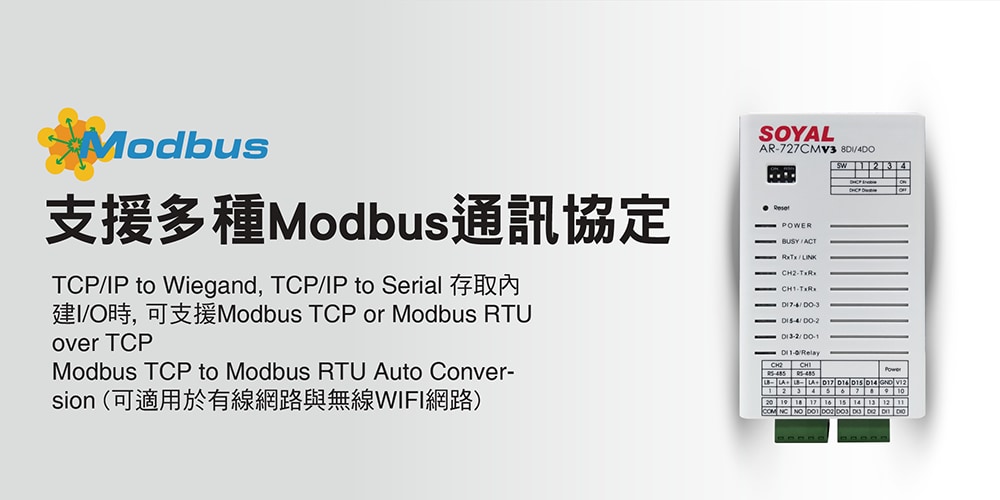 Modbus Gateway (TCP-RTU) TCP/ 唯根轉換器內建8DI 4DO (DO 0為Relay / DO1~3為開集極)