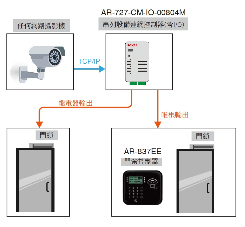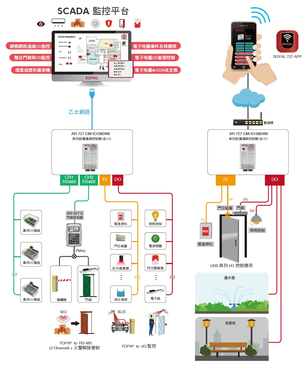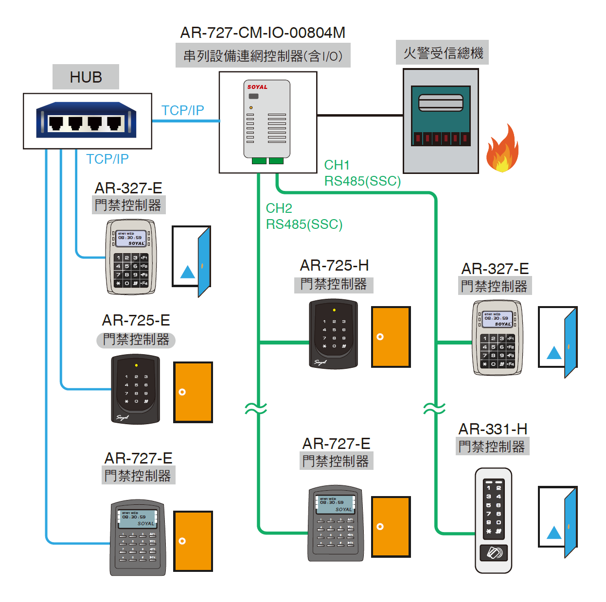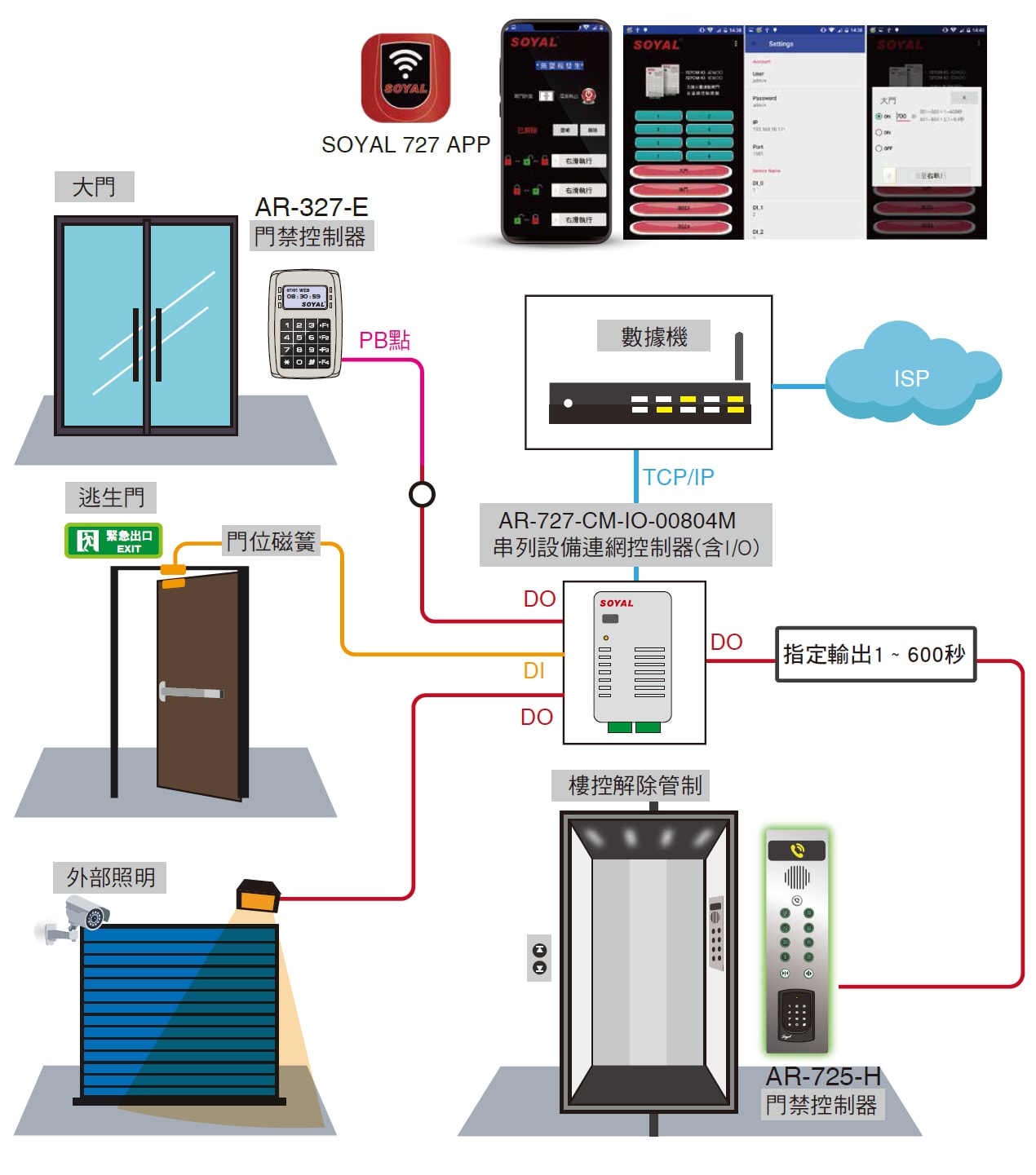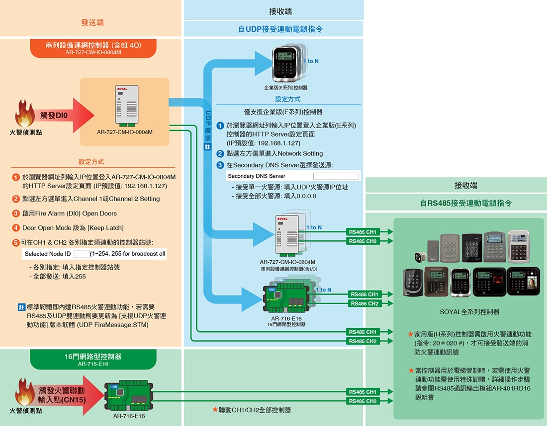 SOYAL AR-727-CM-IO-0804M內建火警消防連動釋放門鎖功能架構介紹