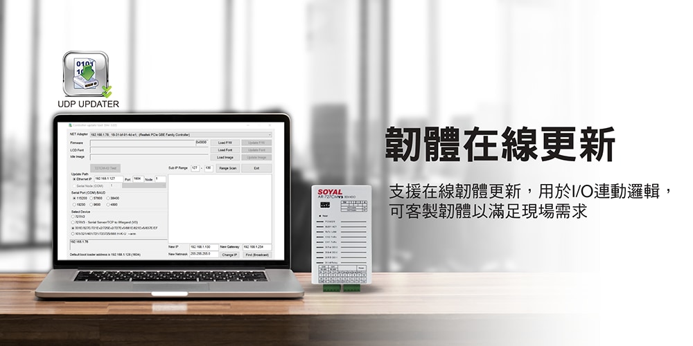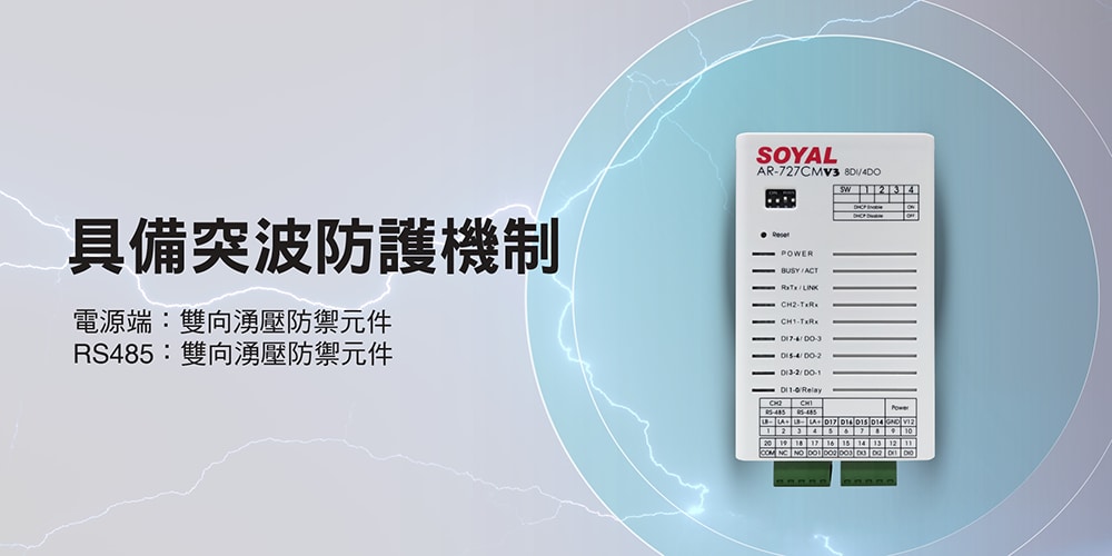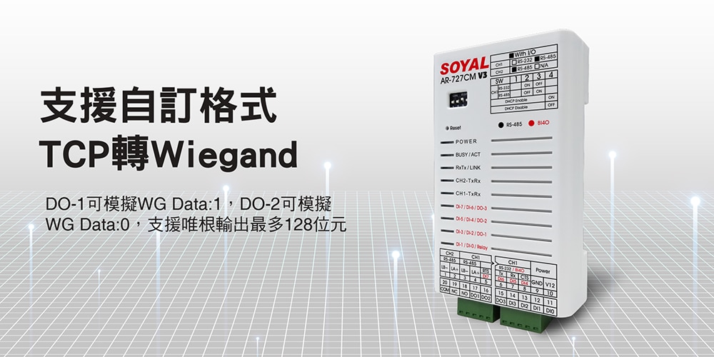 9. 提供雙通道透明傳輸, 可升級RS485/RS232設備具備TCP/IP通訊功能