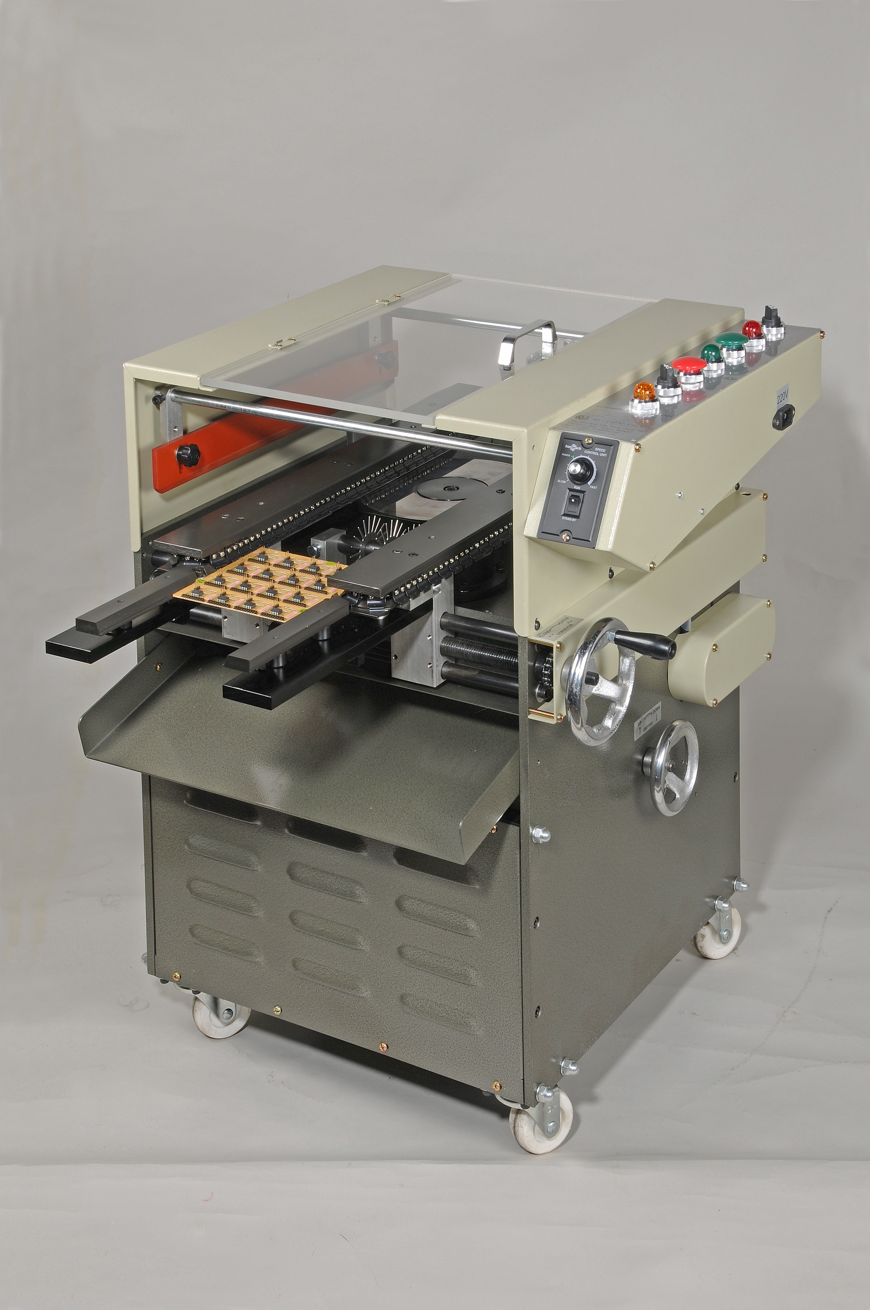 此機型配備一對輸送鏈,將PCB夾住並輸送至高速轉動的刀片上進行修剪。