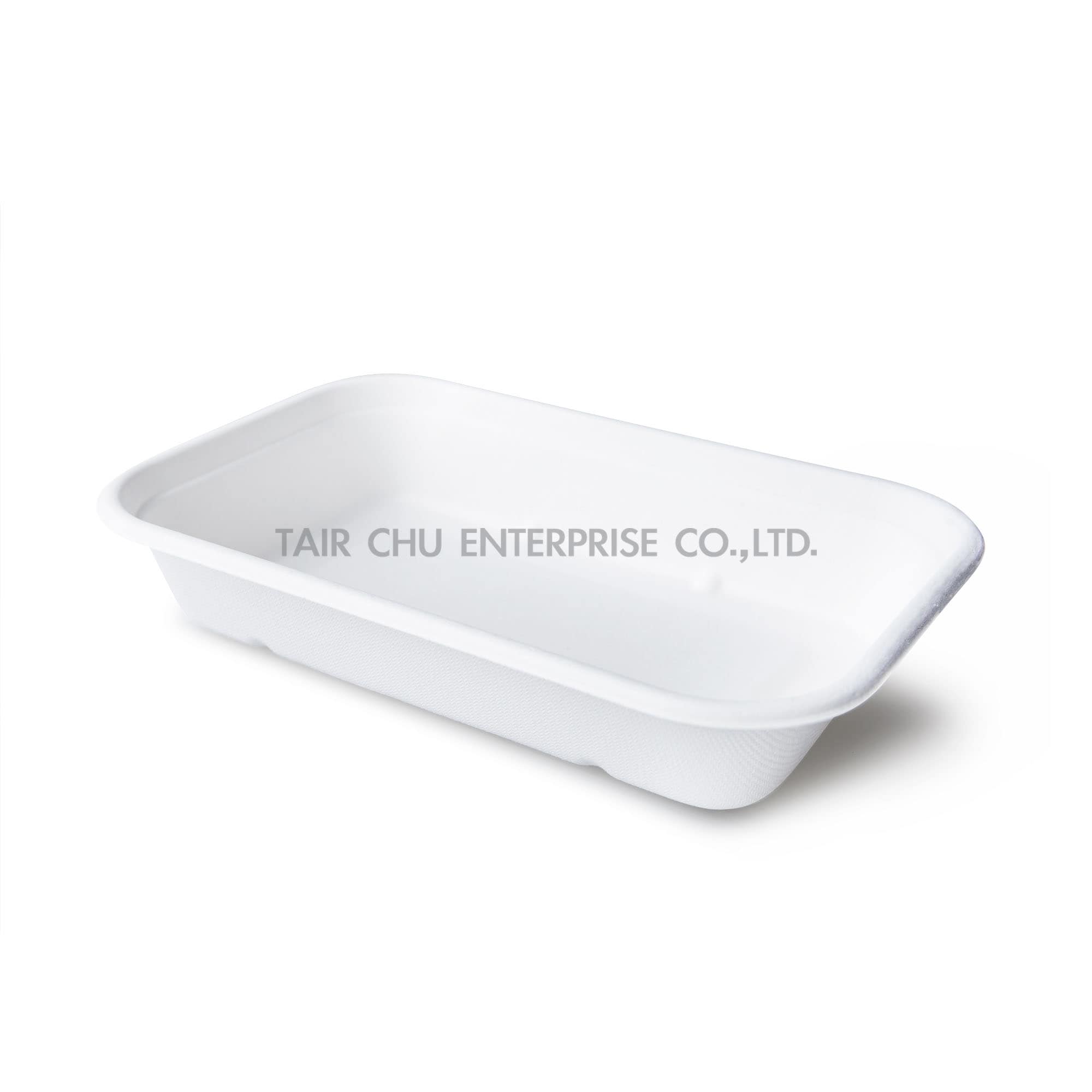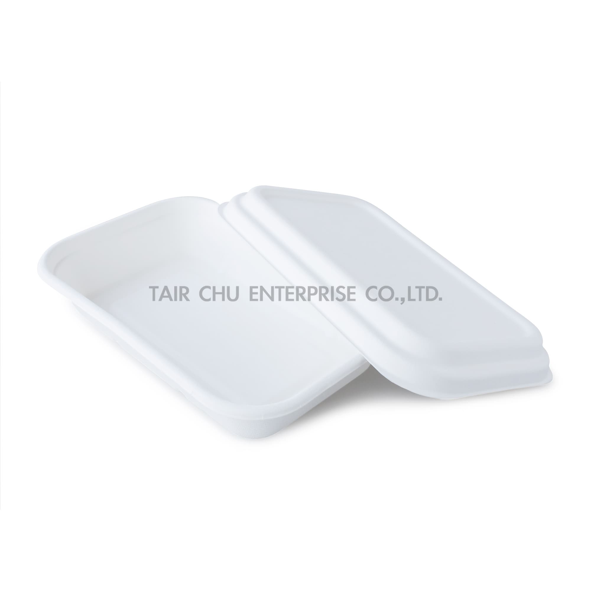 由甘蔗紙漿材質製成的橢圓甘蔗餐盒,分離式上蓋的凹槽設計讓多個餐盒也方便疊放,適合外袋便當、外帶盒餐使用。可搭配餐盒腰封條一起使用。