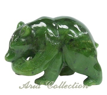 台灣碧玉手工雕刻抓魚的熊