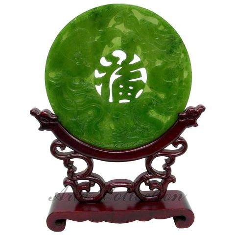 這件精美的臺灣玉屏風展現了精湛的手工雕刻藝術,以威嚴的龍鳳圖案搭配吉祥的福字為主題。此珍貴作品在臺灣精心打造,尺寸為18x23x5公分,完美體現了傳統玉雕工藝的最高境界。天然玉石獨特的紋理和色澤更增添了其無可比擬的美感,使每件作品都成為獨一無二的珍品。這件雅緻的裝飾屏風不僅是高雅的陳設藝術品,更象徵著財運與吉祥,特別適閤眼光獨到的收藏家和亞洲藝術鑑賞家。