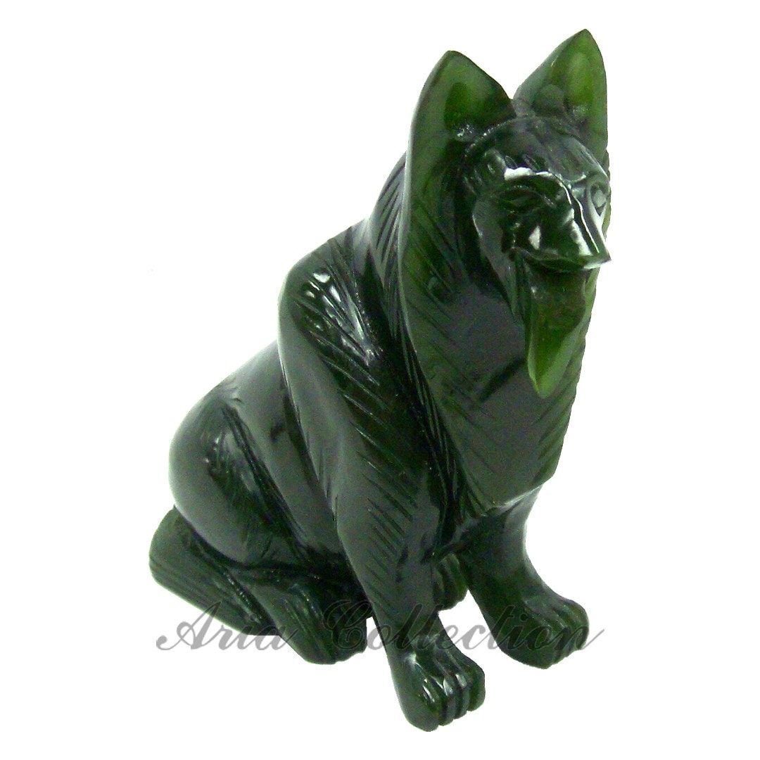 台灣碧玉手工雕刻狼犬擺飾品