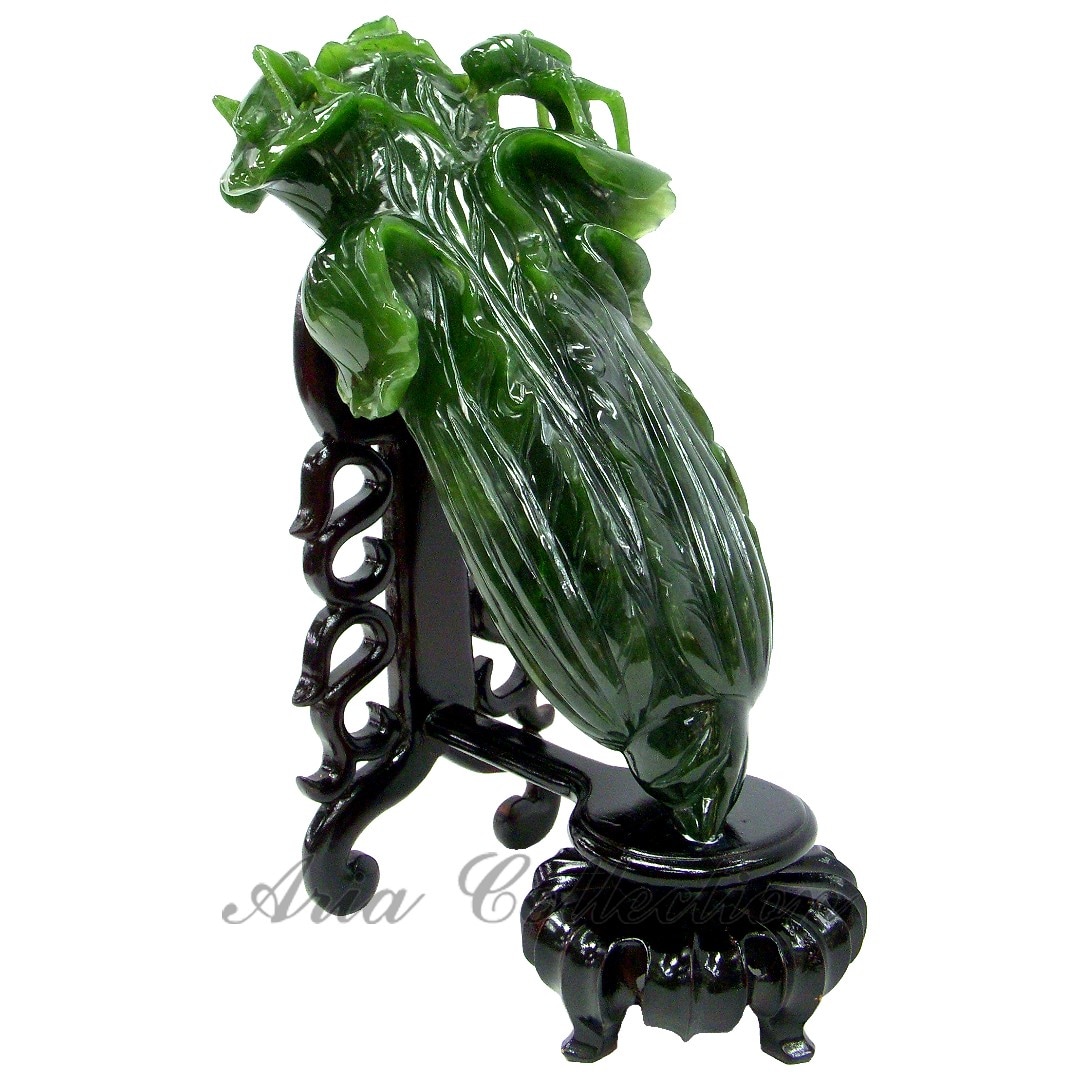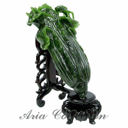 這件精美的臺灣玉白菜擺飾由單塊優質翡翠精心手工雕刻而成,靈感源自國立故宮博物院珍藏的翠玉白菜。每一片葉脈都經過細緻雕琢,呈現出栩栩如生的逼真效果,使這件作品獨一無二,而點綴於葉片上的螽斯與蝗蟲精緻細節更增添了深層的象徵意義。 在中國文化中,白菜因其吉祥的諧音而象徵著繁榮與財富,而螽斯被稱為「紡織娘」,因其多產的特性象徵著多子多孫、子嗣興旺。這種和諧的組合使其成為追求藝術美感與深刻寓意的理想裝飾品。 此件真品臺灣製作的雕塑尺寸為14x24x12公分,展現了卓越的工藝技術與天然玉石的自然之美,是任何收藏或室內空間的尊貴之選