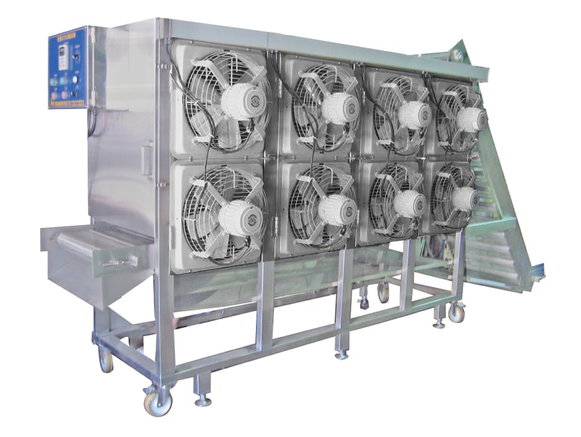 機器適合冷卻風乾油炸、蒸煮、水煮後,銜接於包裝或冷凍庫之前。