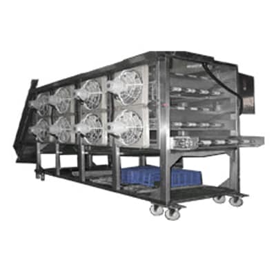 全台不鏽鋼製,食品工業專用。適合各種食品經高溫烹煮 (例如:油炸,蒸煮,水煮)後的冷卻風乾。進入包裝前或冷凍的前置機器。