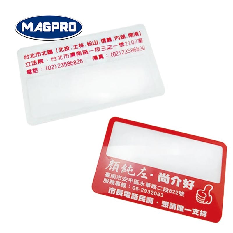 名片放大鏡是名片同時也是放大鏡!俞泰光學超薄名片型卡片型放大鏡,可客製化顏色、印刷文字與廣告,可以作為獨特風格的名片,也可以作為創意禮贈品、人氣宣傳禮贈品、文宣品、選舉小物等。