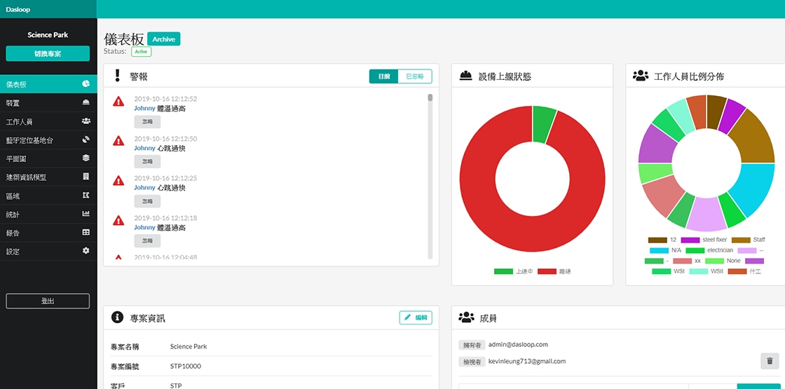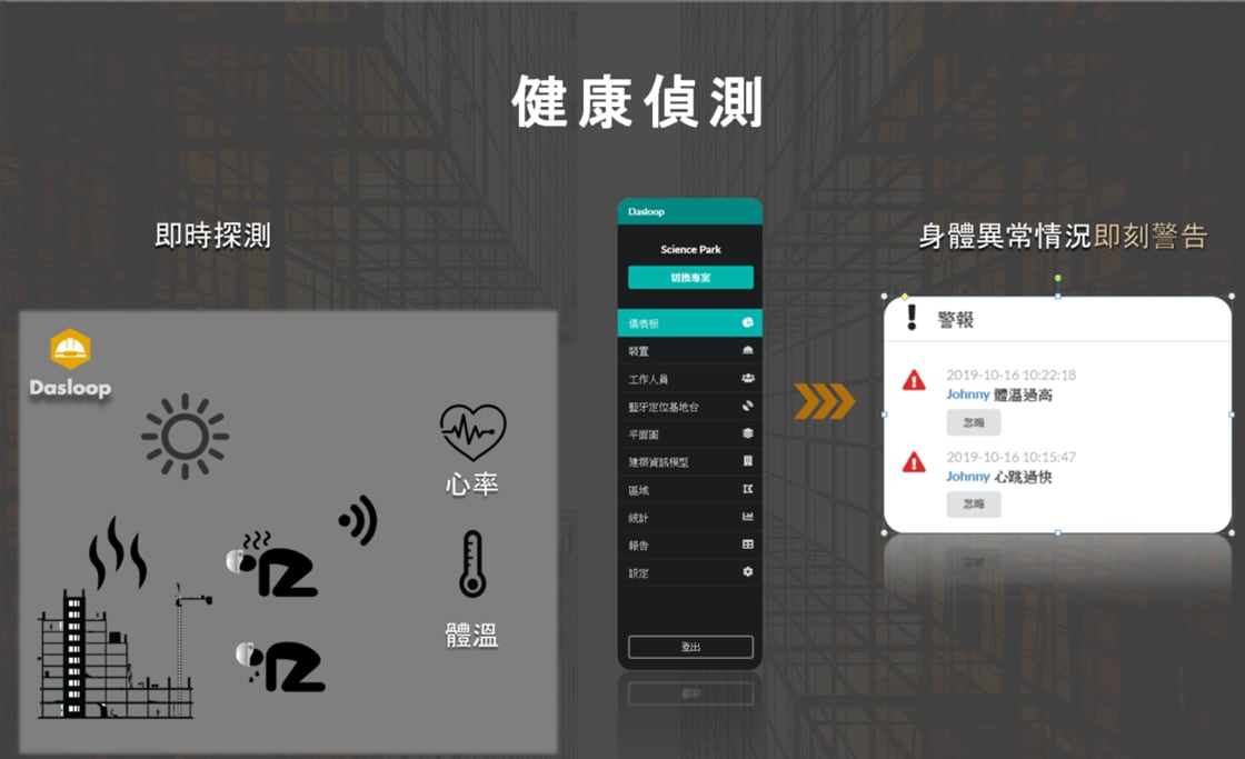透過心律與體溫的感測,掌握施工人員即時狀況。
