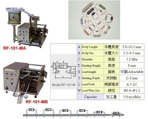 | 電阻成型機 ( MK型-臥式成型,紙編帶料件專用) : RF-101MB | |
