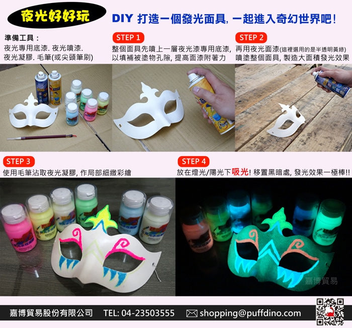 (使用在深色表面上,建議先噴塗恐龍夜光專用白色底漆,以確保吸光效果達到最佳。)