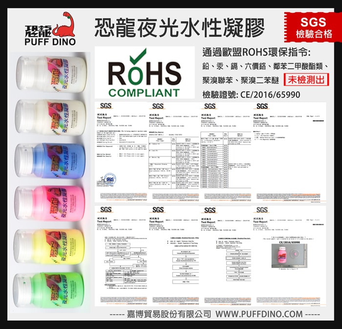 恐龍夜光水性凝膠在有光源(包含日光燈及陽光)的環境中會自動蓄光(吸收能量並儲存在塗層中)至飽和狀態,當週遭環境光源消失,塗層即會開始放光(將儲存的能量釋出使漆料發光),直至能量都釋放完。蓄光及放光可一再重覆循環,除非塗層被刮除破壞;然而這過程並不會對人體有任何影響,純粹是光的吸收與釋放。蓄光性與噴塗厚度及面積有關。