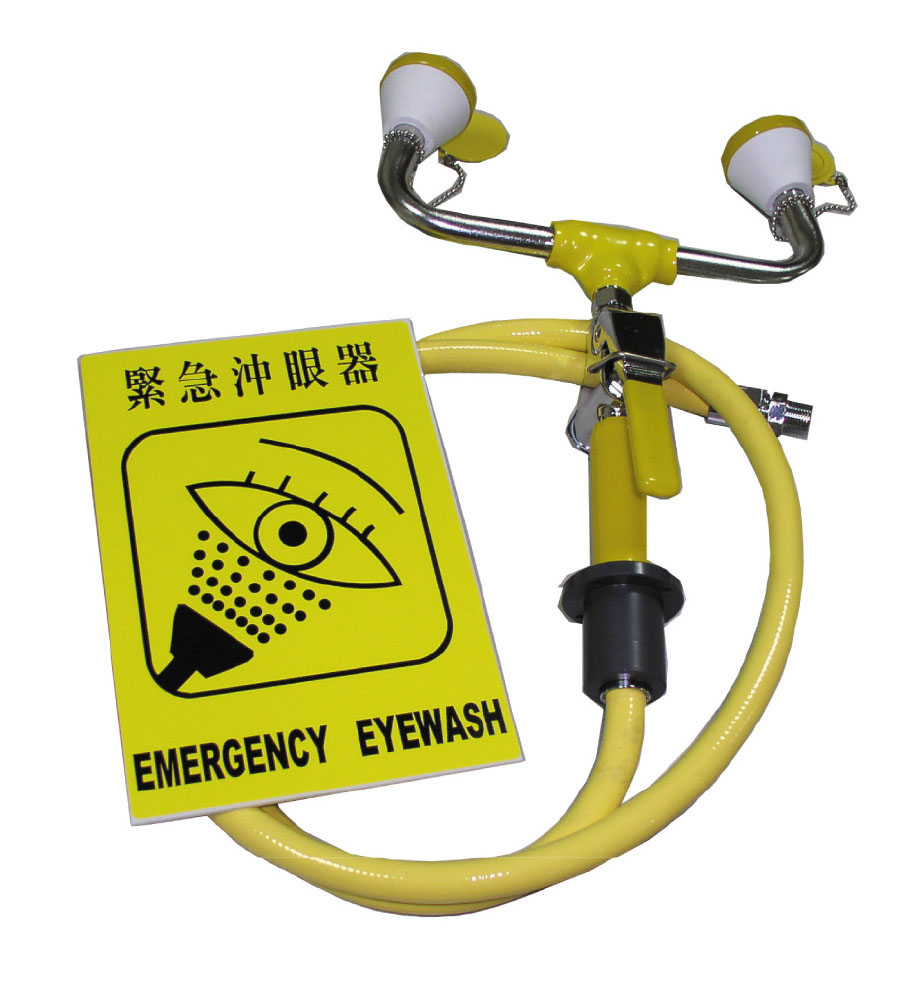 | 沖眼噴頭 | 塑膠材質,霧擴散式噴頭,噴頭尺寸Ø50mmx44mm,內層多孔不銹鋼過濾網片,外部附黃色塑膠防塵蓋,由防水珠鏈和本體聯結 | |