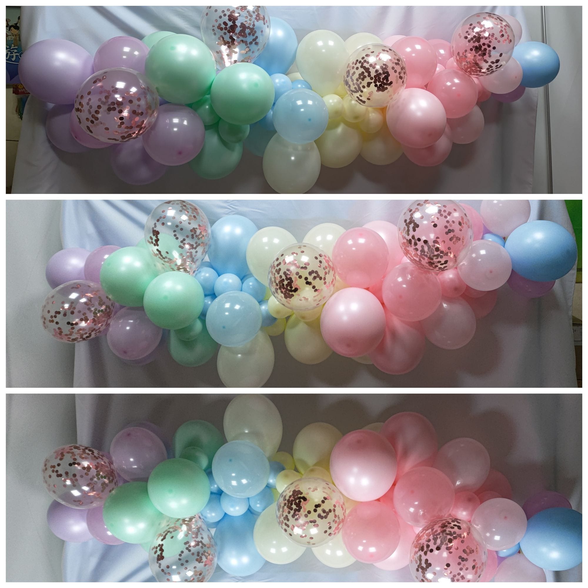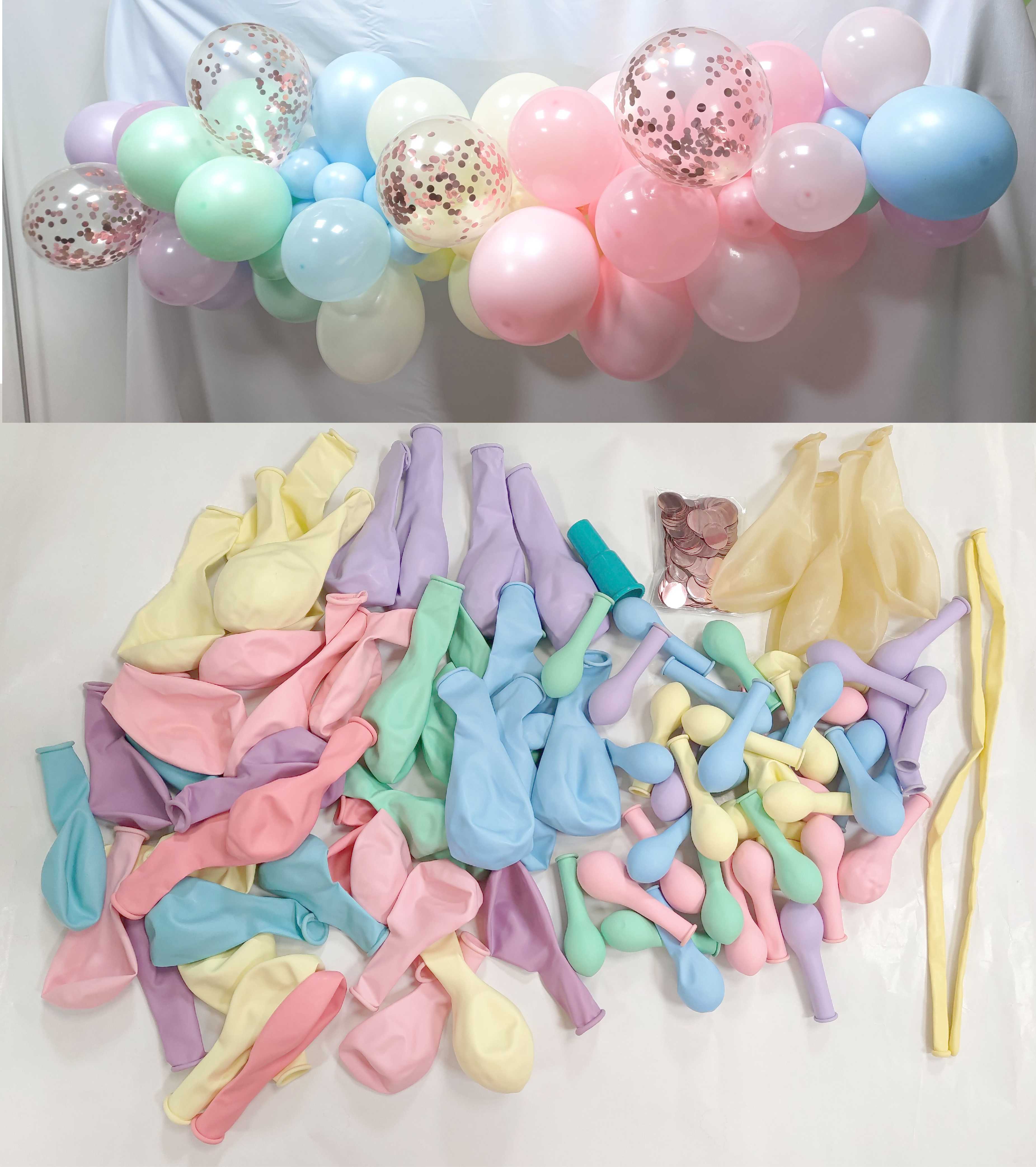 DIY馬卡龍氣球花環與玫瑰金五彩紙屑氣球...