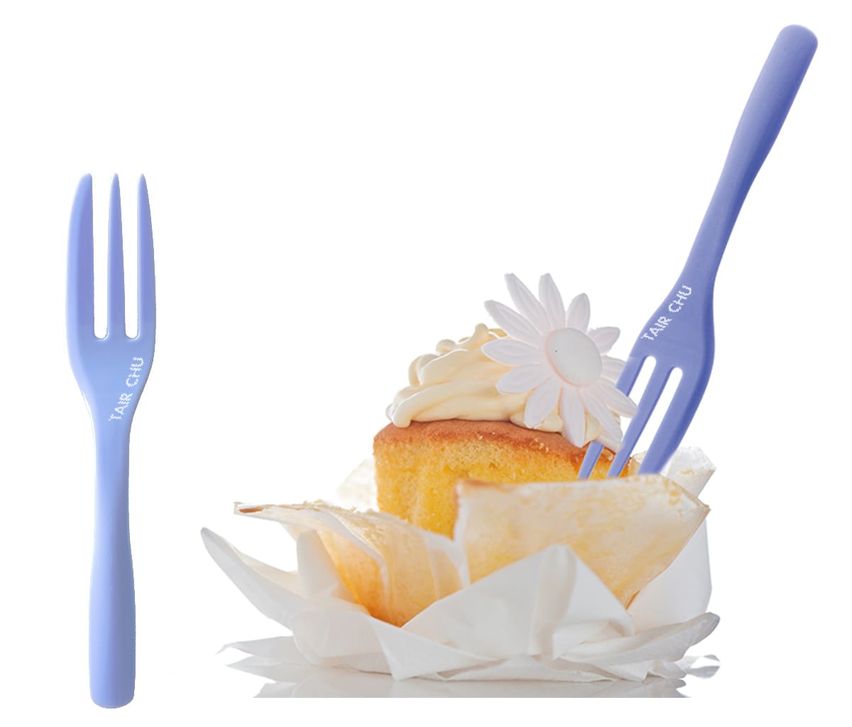 法式蛋糕叉擁有優美可愛的曲線外型,深獲眾人的喜愛, 貼心的切邊設計,讓人能輕鬆將甜點分食入口,迷人的5種色彩:藍莓、蜜桃、黑色、薰衣草、薄荷色, 讓各種甜點、水果相爭與甜點叉邂逅!