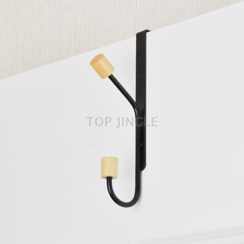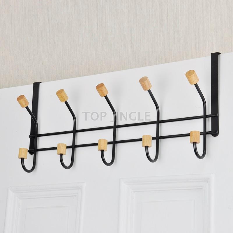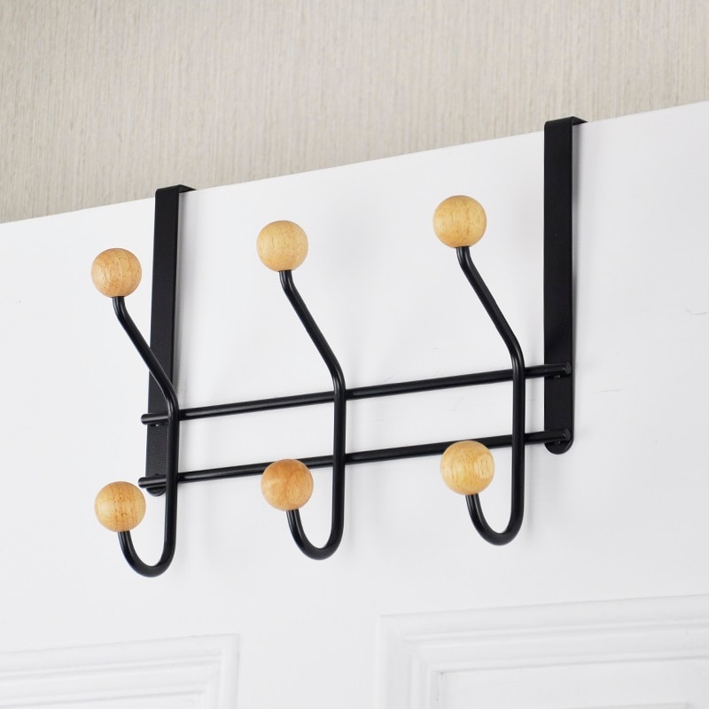 掛鉤由黑色金屬絲製成,帶有6顆橡膠木。 此款產品可掛在門上,易於使用。