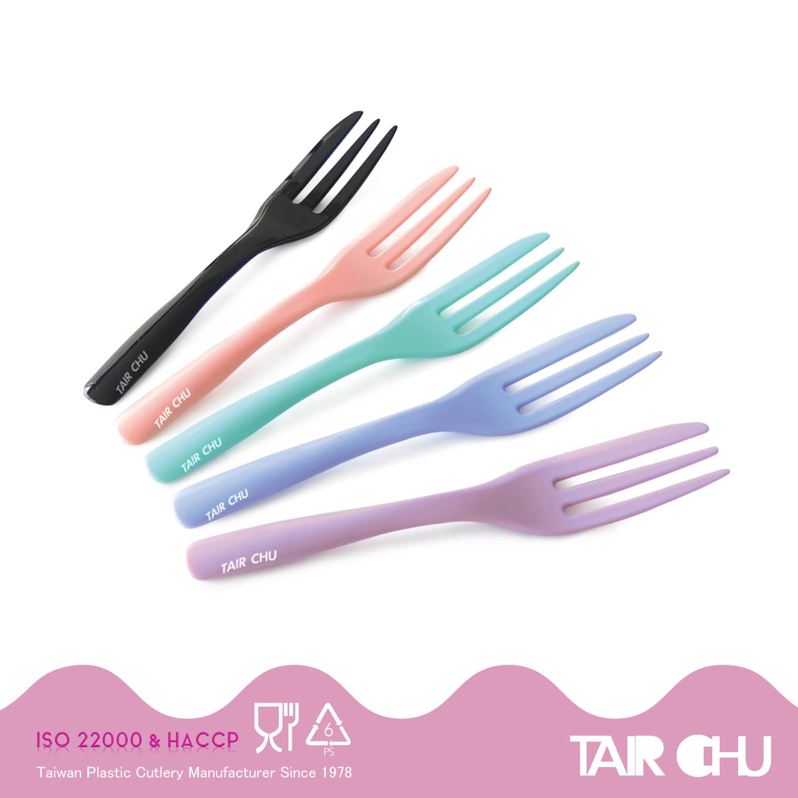 法式蛋糕叉擁有優美可愛的曲線外型,深獲眾人的喜愛, 貼心的切邊設計,讓人能輕鬆將甜點分食入口,迷人的5種色彩:藍莓、蜜桃、黑色、薰衣草、薄荷色, 讓各種甜點、水果相爭與甜點叉邂逅!