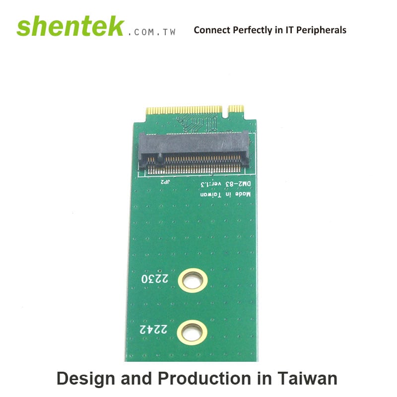 Shentek releases M.2 A key to M Key Adapter Card. With the Card, we can easy to instill M.2 A Key device to your M Key slot. It adapter supports A key PCB size for 2230/2242/2260/2280.